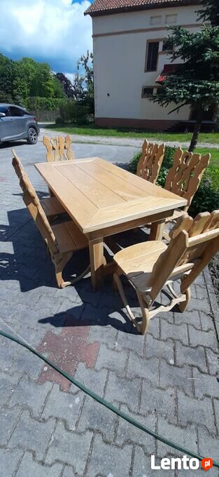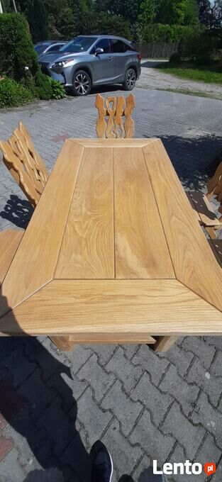 Stół oraz krzesła rzeźbione- dąb